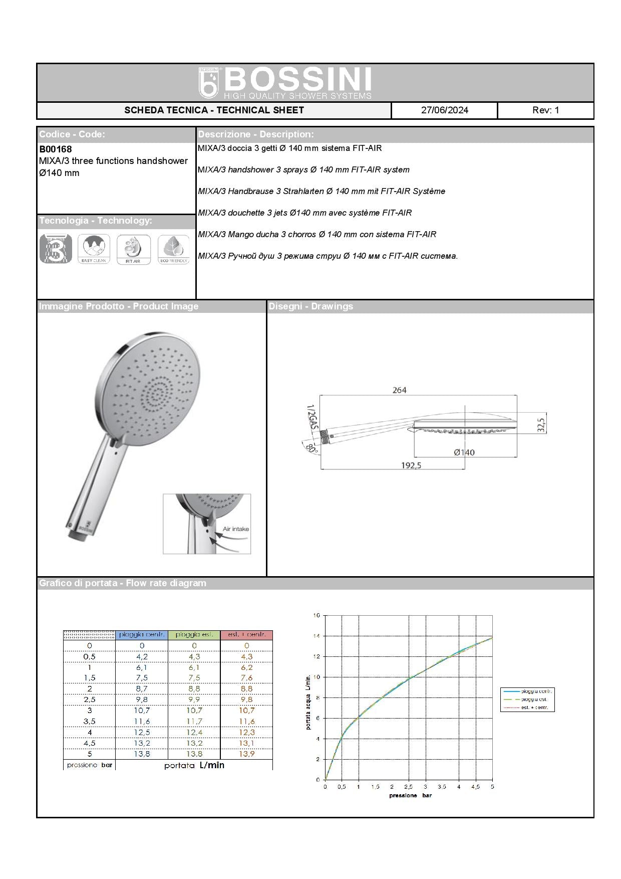 Bossini Doccia 3 getti Ø 140 mm MIXA/3 FIT-AIR